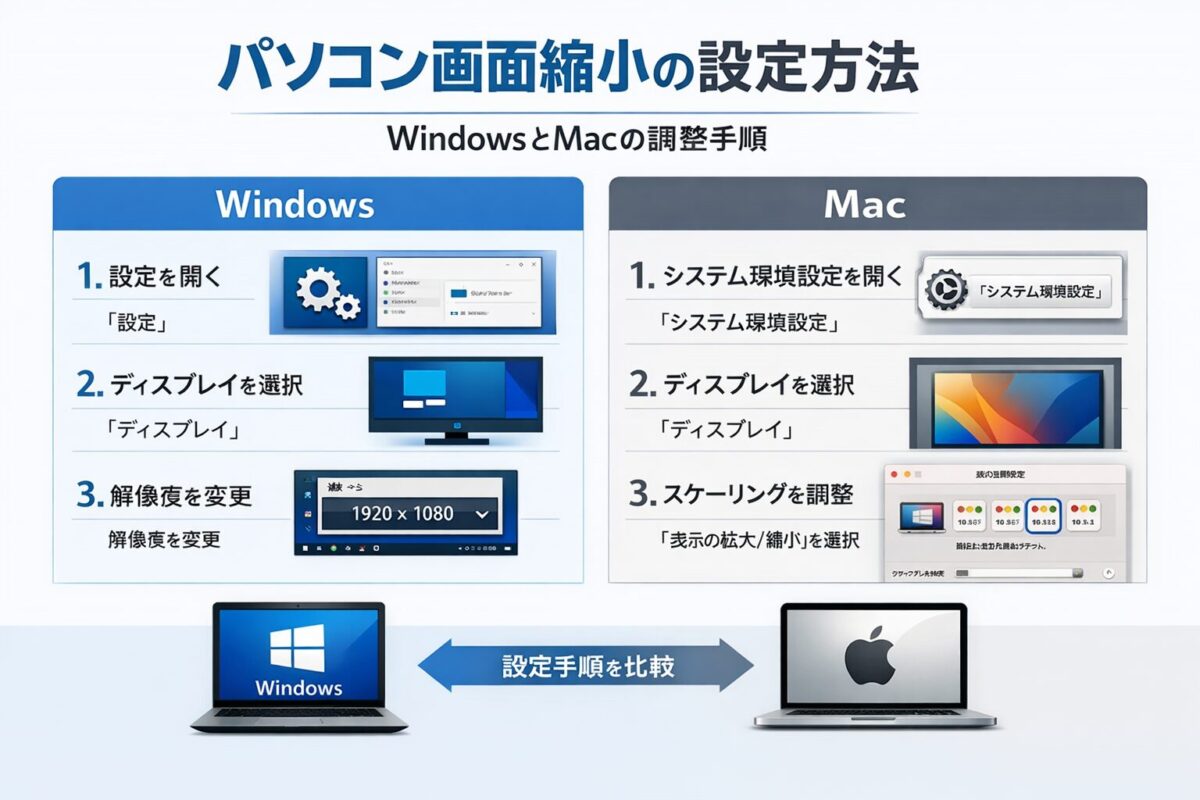 パソコン画面縮小の設定方法|WindowsとMacの調整手順
